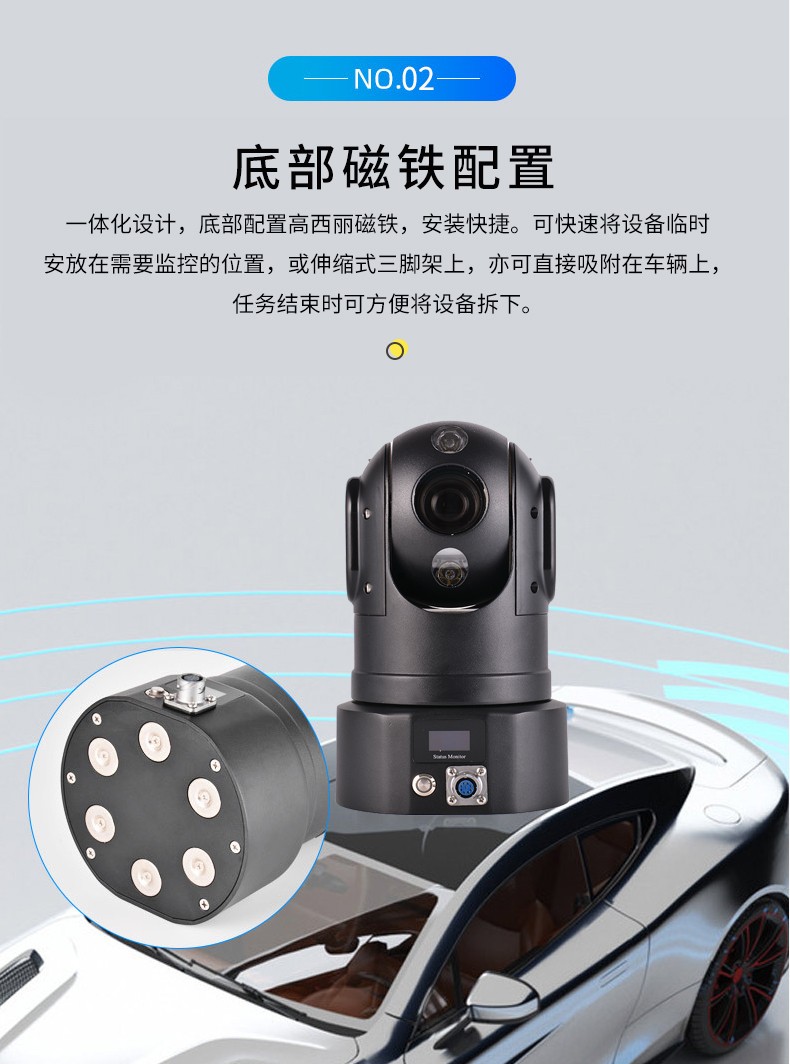 立即咨詢友聯哨兵4G高清布控球是一款功能全面、攜帶方便的無線視頻4G應急布控球產品,超高設備集成度,內置高性能鋰電池組,具備防水防震的特性,可滿足臨時布控和快速安裝的特殊要求。執(zhí)行任務時可快速將設備臨時安放在需要監(jiān)控的位置,或伸縮式三腳架上,也可直接吸附在車輛上,任務結束時可方便將設備拆下。